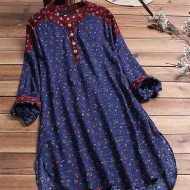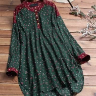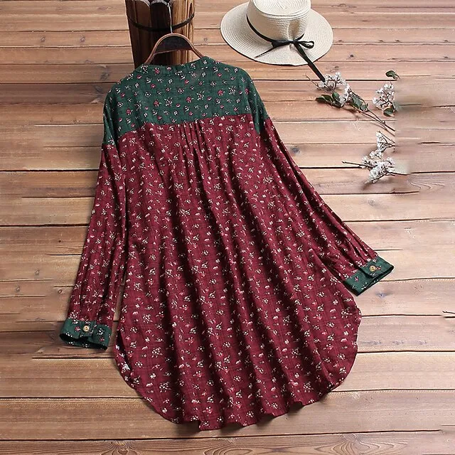 Women’s Plus Size Shirt Blouse Cotton Floral Graphic Daily Vacation Weekend Red Blue Green Print Long Sleeve Holiday Casual Crew Neck Regular Fit Spring Fall Winter