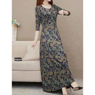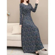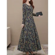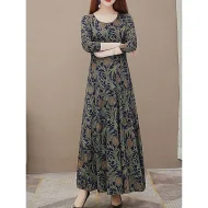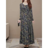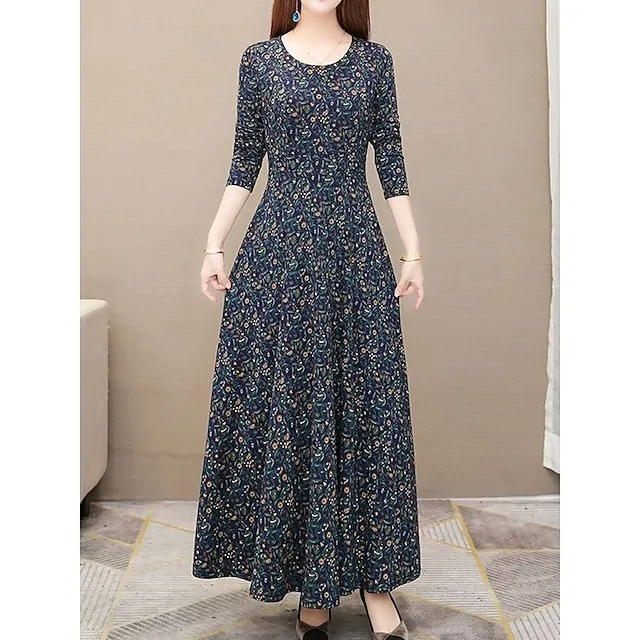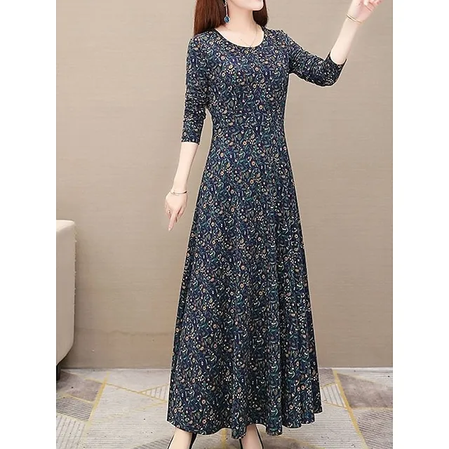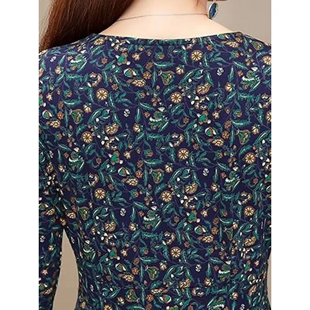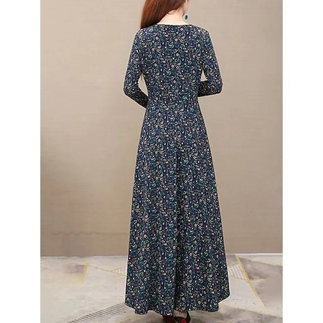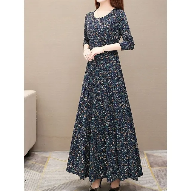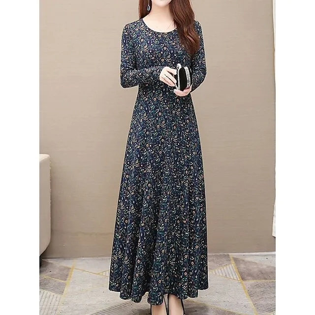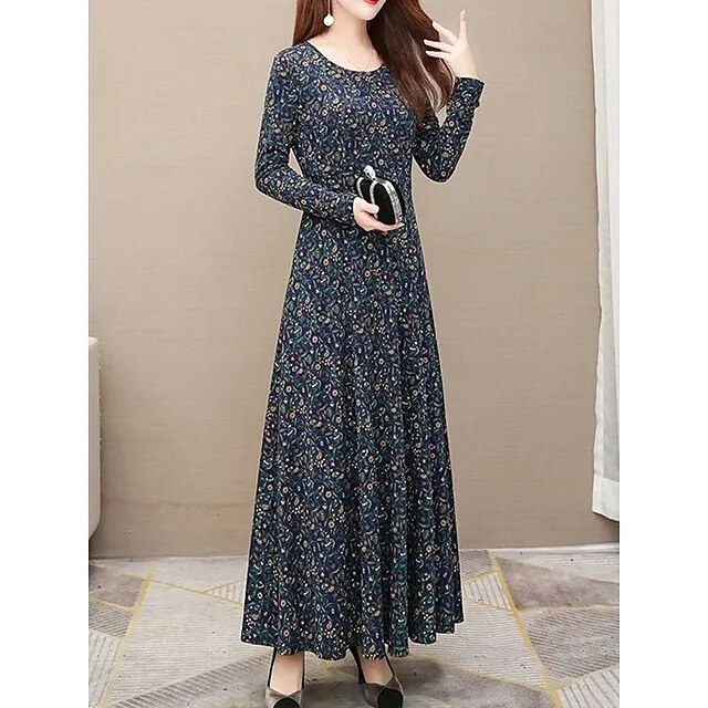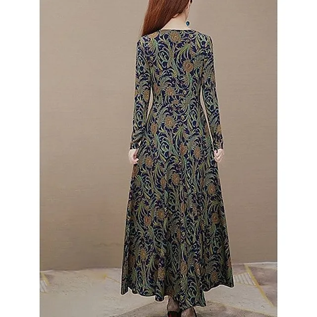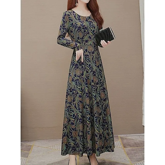 Women’s Prom Dress Party Dress Cocktail Dress Long Dress Maxi Dress Blue Green Long Sleeve Floral Print Spring Fall Winter Crew Neck Fashion Winter Dress Wedding Guest Birthday M L XL XXL 3XL