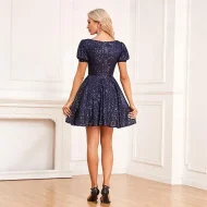 Women’s Sequin Dress Prom Dress Party Dress Mini Dress Dark Blue Short Sleeve Plain Zipper Summer Spring Fall V Neck Party Birthday S M L XL