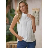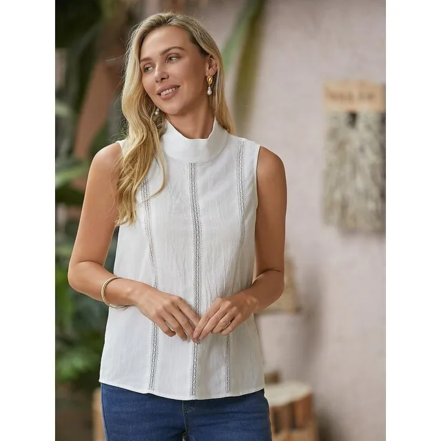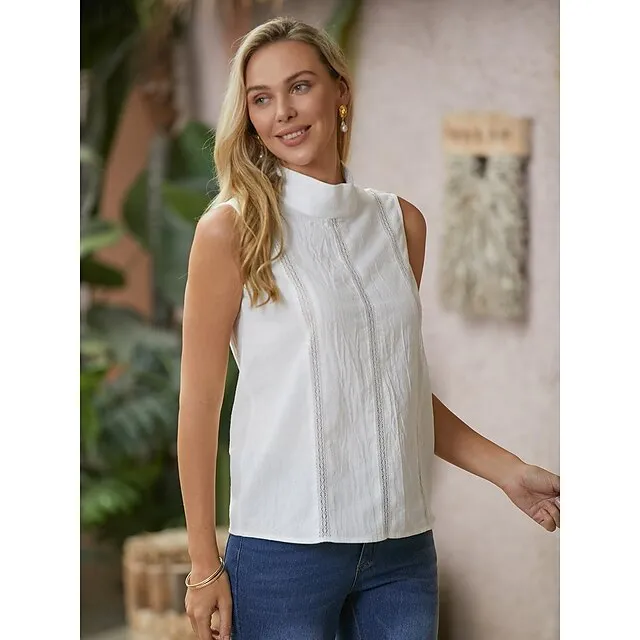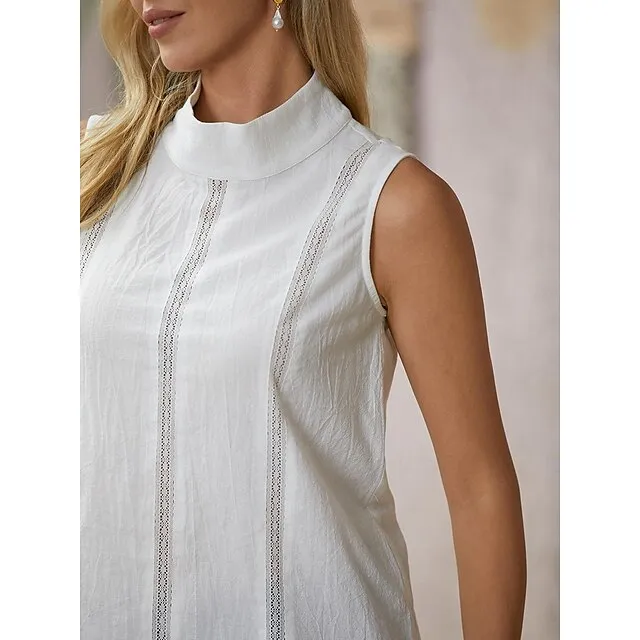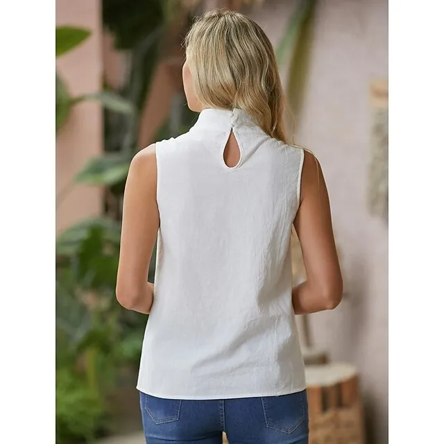 Women’s Tank Top Linen Plain Casual White Sleeveless Elegant Fashion Basic Standing Collar Regular Fit